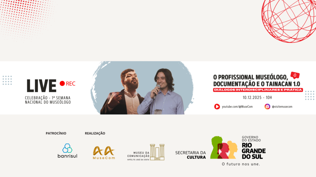 O Museu de Comunicação Social Hipólito José da Costa (MuseCom) promove na próxima quarta-feira (10) às 10h a live “O Profissional Museólogo, Documentação e o Tainacan 1.0: Diálogos Interdisciplinares e Prática”. A transmissão será no YouTube e no Instagram da instituição. A atividade faz parte da programação da I Semana Nacional do Museólogo (SENAMUS). O […]