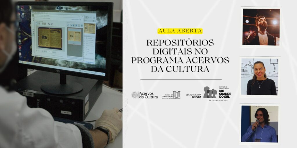 O Programa de Pós-Graduação em Museologia e Patrimônio da Universidade Federal do Rio Grande do Sul (PPGMusPa/UFRGS), em parceria com o Programa Acervos da Cultura, programa estratégico da Secretaria de Estado da Cultura do Rio Grande do Sul, realizará no dia 13 de outubro (segunda-feira), às 14h, a aula aberta e gratuita “Repositórios Digitais no […]