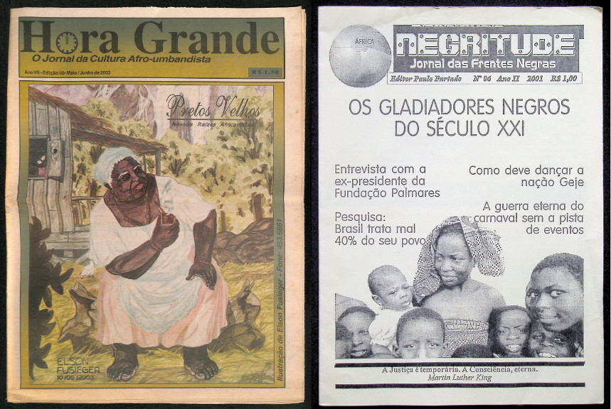 Assim, ao longo de suas existências, esses periódicos ampliaram a discussão sobre as diversas questões que permeavam o cotidiano das pessoas pretas. Dentre eles, merecem destaque os jornais com foco nas manifestações das religiões de matriz africana. Tais acervos mergulham nas raízes culturais e religiosas do povo negro, abrindo espaço para os saberes emanados da prática cotidiana dos praticantes. Jornais como a Tribuna da Umbanda e Religiões Afro, Folha da Umbanda, Hora Grande, Grande Axé e Jornal Saravá evidenciam a linguagem enraizada e a rica teia de significados culturais e espirituais do povo de terreiro, transformando as vivências diárias em uma vida pulsante.