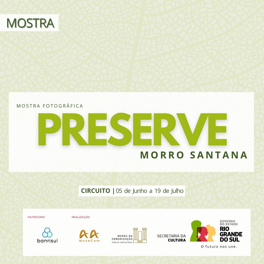 Neste ano, o MuseCom, instituição da Sedac RS, com o patrocínio e oferecimento do Banrisul, em parceria com o Preserve Morro Santana, tem orgulho de apresentar a mostra fotográfica “Preserve”.
