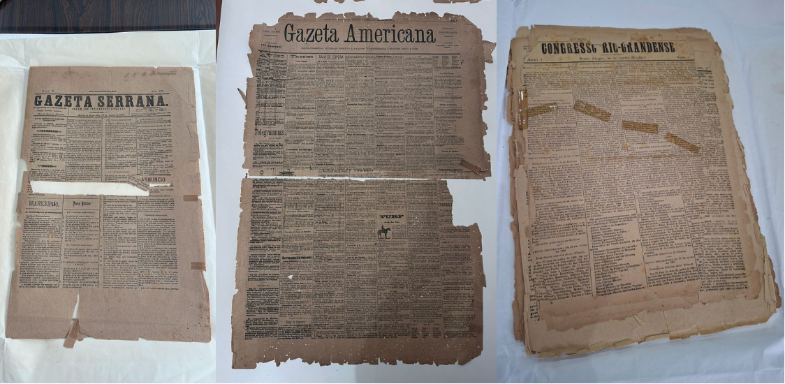 “Os jornais raros encontram-se bastante fragilizados, situação que foi agravada pelas enchentes de 2024, ocasionando súbito aumento de umidade incidente sobre eles. Por isso, consideramos necessária a intervenção, tanto para possibilitar um melhor resultado na digitalização, quanto para resguardar a sua materialidade”, explica Vivian Eiko Fujisawa, do Núcleo de Acervos do MuseCom. A próxima etapa será a restauração de outros seis títulos do acervo da instituição, em data a ser definida pela equipe do Museu.